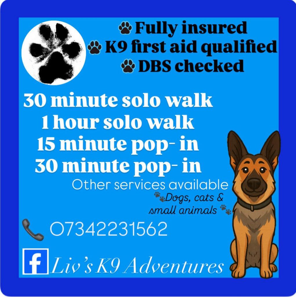 Hello, my name is Olivia. I provide dog walking and pop-in services in Hebburn and Jarrow.